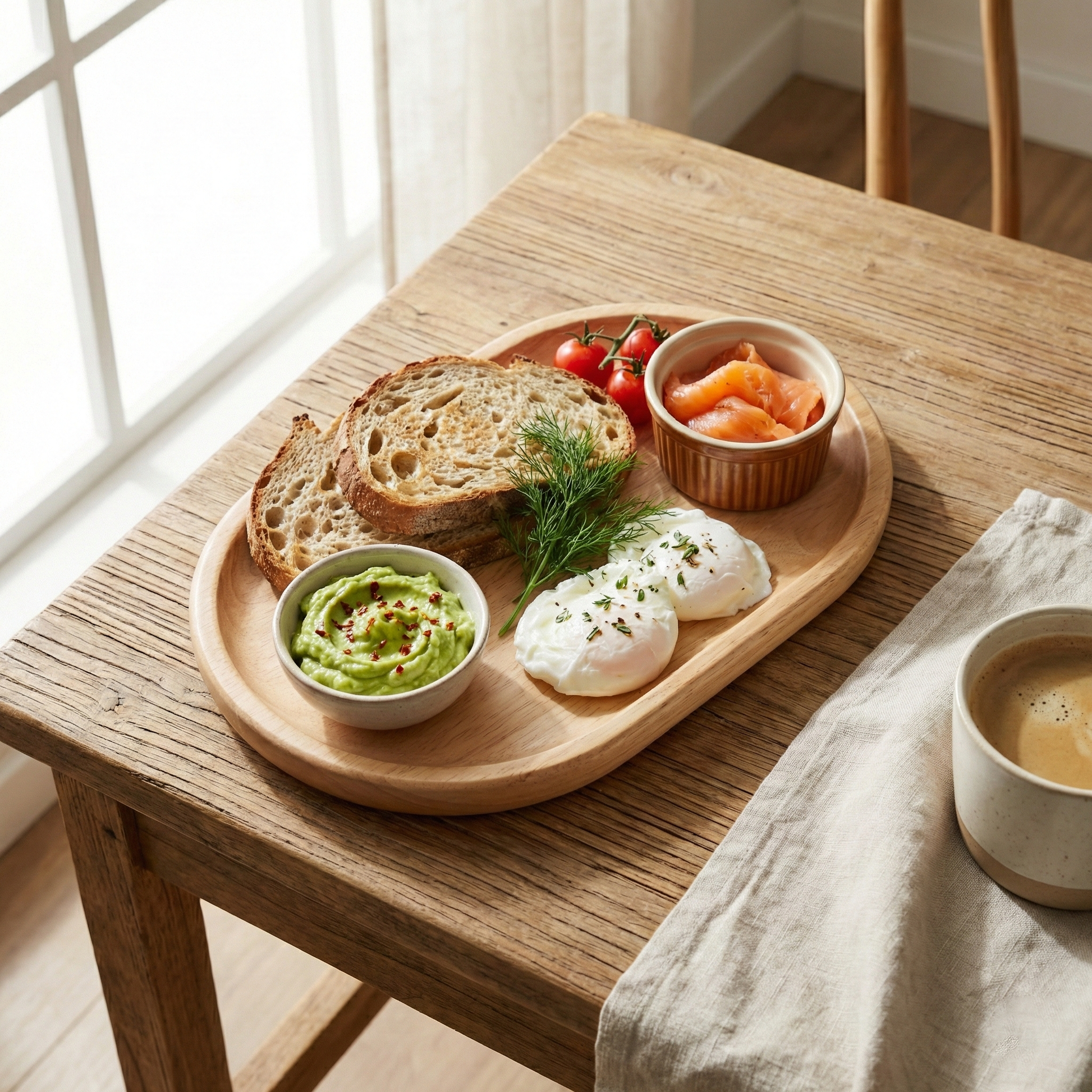 - Wood tray with soft, warm grain