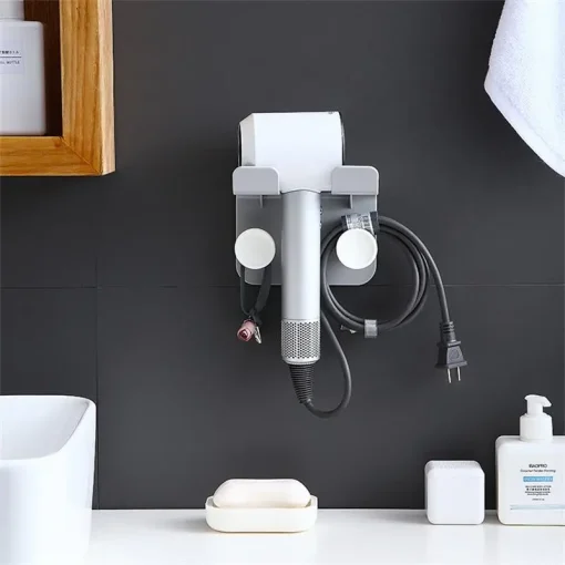 Support de sèche-cheveux minimaliste pour le rangement de la salle de bain à domicile photo review
